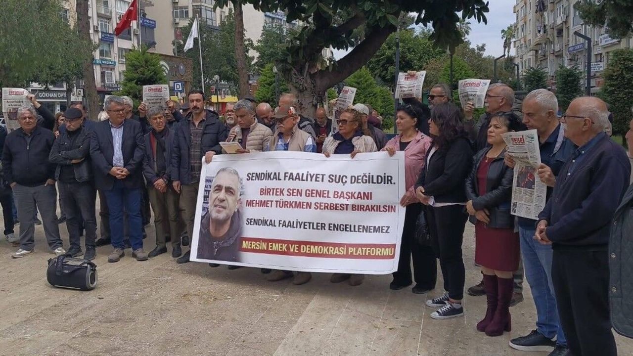 Mehmet Türkmen’in serbest bırakılması çağrısı yapılan açıklamada şu ifadeler kullanıldı: “Bizler Mersin Emek Demokrasi Platformu olarak sendikal mücadelenin bu ülkenin demokrasi için ne kadar önemli ve içinden geçtiğimiz bu zorlu günlerde ne kadar elzem olduğunu biliyoruz. İktidarı demokrasi ve hukuka aykırı bu uygulamasından bir an önce vazgeçme çağrısı yapıyoruz ve Mehmet Türkmen’in biran önce bırakılması ailesi ve biz mücadele arkadaşlarının arasına yeniden dönmesi çağrısını yapıyoruz”