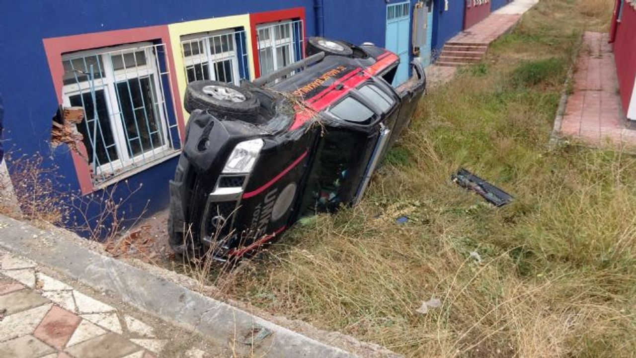 Yozgat'ta Şehir Hastanesi istikametine giden B.Ü. yönetimindeki 66 AZ 113 plakalı UMKE aracı, Kazım Aslan Bulvarı'nda kaygan zemin nedeniyle kontrolden çıkarak özel eğitim veren bir okulun bahçesine devrildi.
