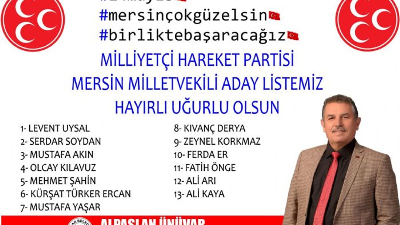 14 Mayıs'da yapılacak olan 13. Cumhurbaşkanlığı ve 28. Dönem Milletvekilliği genel seçimlerinin Türkiye için çok önemli olduğunu belirten Ünüvar; "Milletvekilliği aday listemiz açıklandı. Mersin'de sıralamaya giren birbirinden değerli 13 aday arkadaşımıza çıktıkları bu kutlu yolda başarılar diliyoruz. 14 Mayıs'ta aziz milletimiz, kararını Milliyetçi Hareket Partisi ve Cumhur ittifakından yana kullanarak yeni bir zafere imza atacak. 54 yıllık şanla ve şerefle Türkiye Cumhuriyeti Devleti'nin siyasal hayatına katkı sunmuş kutlu yuvada hep birlikteyiz. 14 Mayıs'ta Cumhur'un zaferi hilal ile yükselecek 14 Mayıs gecesi bizim için zafer gecesi olacak" dedi.