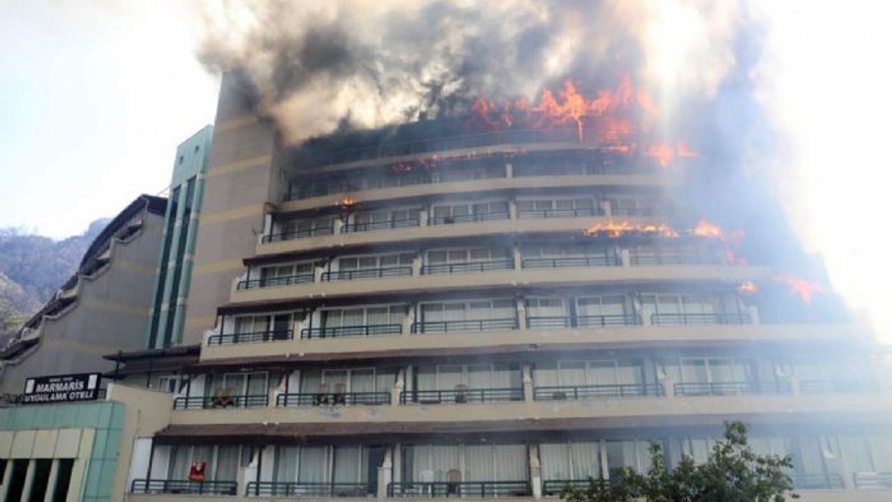 Yangının çıkışından 10 dakika sonrası rüzgarın da şiddeti ile otelin üst bölümündeki ormanlık alana sıçrayan alevler otelin 7'inci katının çatısını tutuşturdu. Otelde bulunan müşteriler otel görevlilerinin uyarısı ile 5 dakika içinde tahliye edildi.