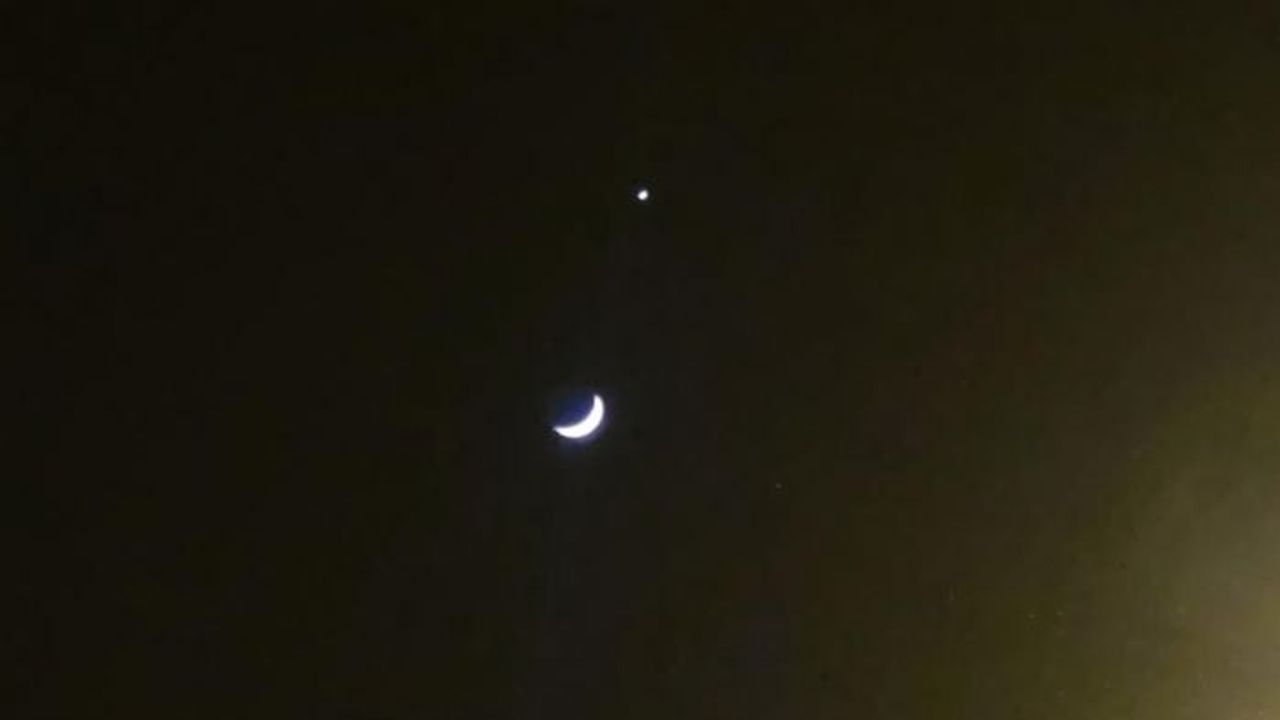 Hilal biçimi alan aya çok yaklaşan Venüs gezegenin Türk bayrağındaki formuna kavuşması, objektiflere yansıdı. Yaklaşık 2 saat süren manzara ilgiyle izlendi.