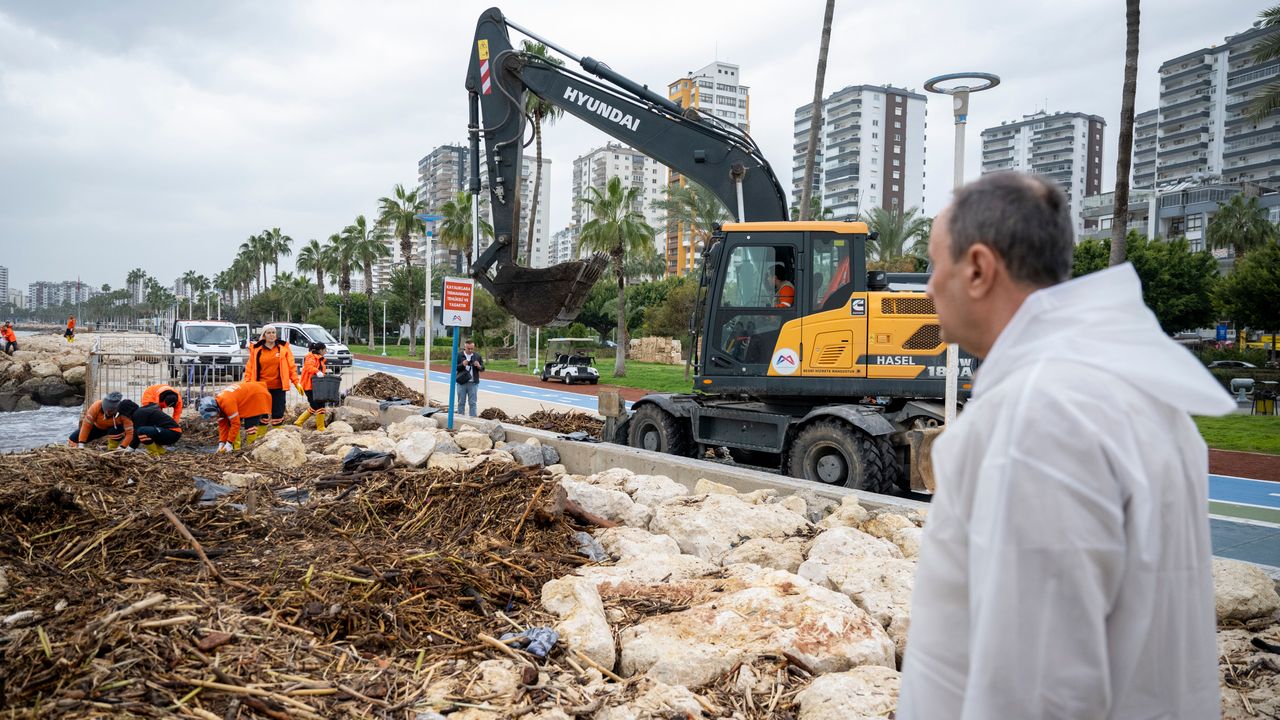 Mezitli ilçesi Tece sahili ile Akdeniz ilçesi Kazanlı sahili arasını kapsayan bölgede sel sularının sürüklediği odun, çakıl ve süprüntü atıkları, Büyükşehir ekiplerinin koordineli çalışmasıyla temizleniyor. Öte yandan Adnan Menderes Bulvarı Kültür Park ve çevresinde de taşkınlar sonrası yüzey akıntısı ile denize ulaşan atıkların temizliği yapılırken, kuvvetli yağışlar nedeniyle tahrip olan yerlerde ise yenileme çalışmaları süratle devam ediyor.