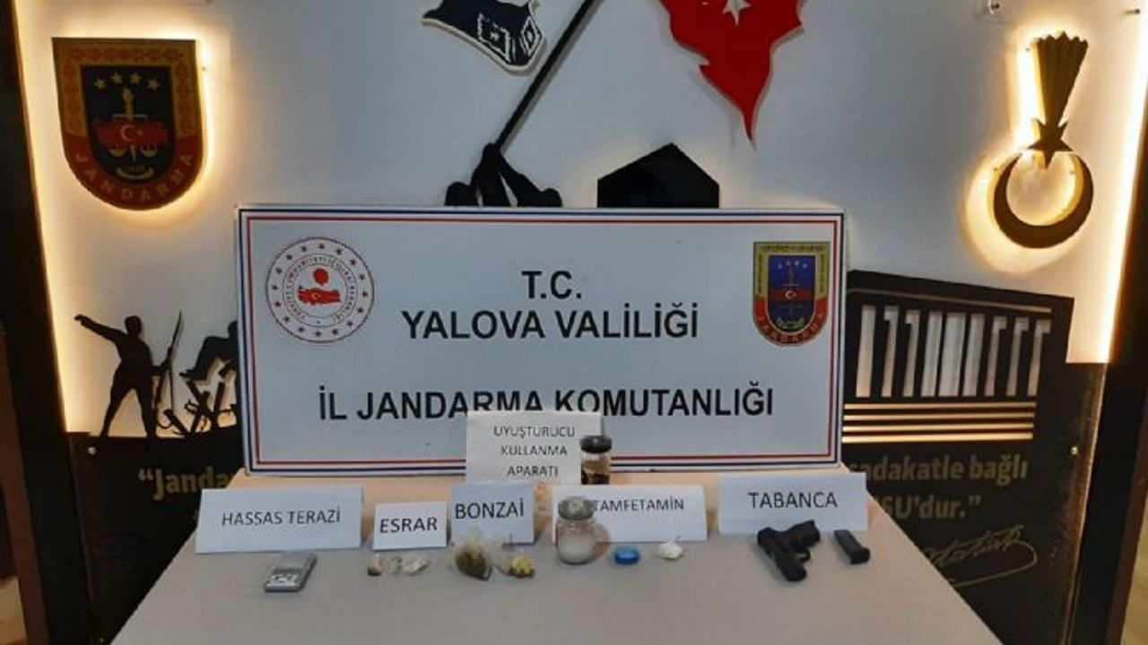 Alınan bilgiye göre, İl Jandarma Komutanlığı ekipleri, İstanbul'dan temin ettikleri uyuşturucuları Yalova'ya getirerek piyasaya süreceği bilgisine ulaştığı 4 şüpheliyi takibe aldı. Şahısların içinde bulunduğu otomobil, merkeze bağlı Esadiye köyü yakınlarında durduruldu. Araçtaki M.Ö., Y.G., Y.T., C.T. ve G.Ö. gözaltına alındı. Araç ve M.Ö.'nün ikametinde yapılan aramalarda; 267 gram metamfetamin, 18 gram sentetik sentetik kannabinoid (bonzai), 5 gram esrar, 5 gram kenevir tohumu, 3 adet uyuşturucu kullanma aparatı ve 1 adet tabanca ile bu silaha ait 1 adet şarjör ve 10 adet fişek ele geçirildi.