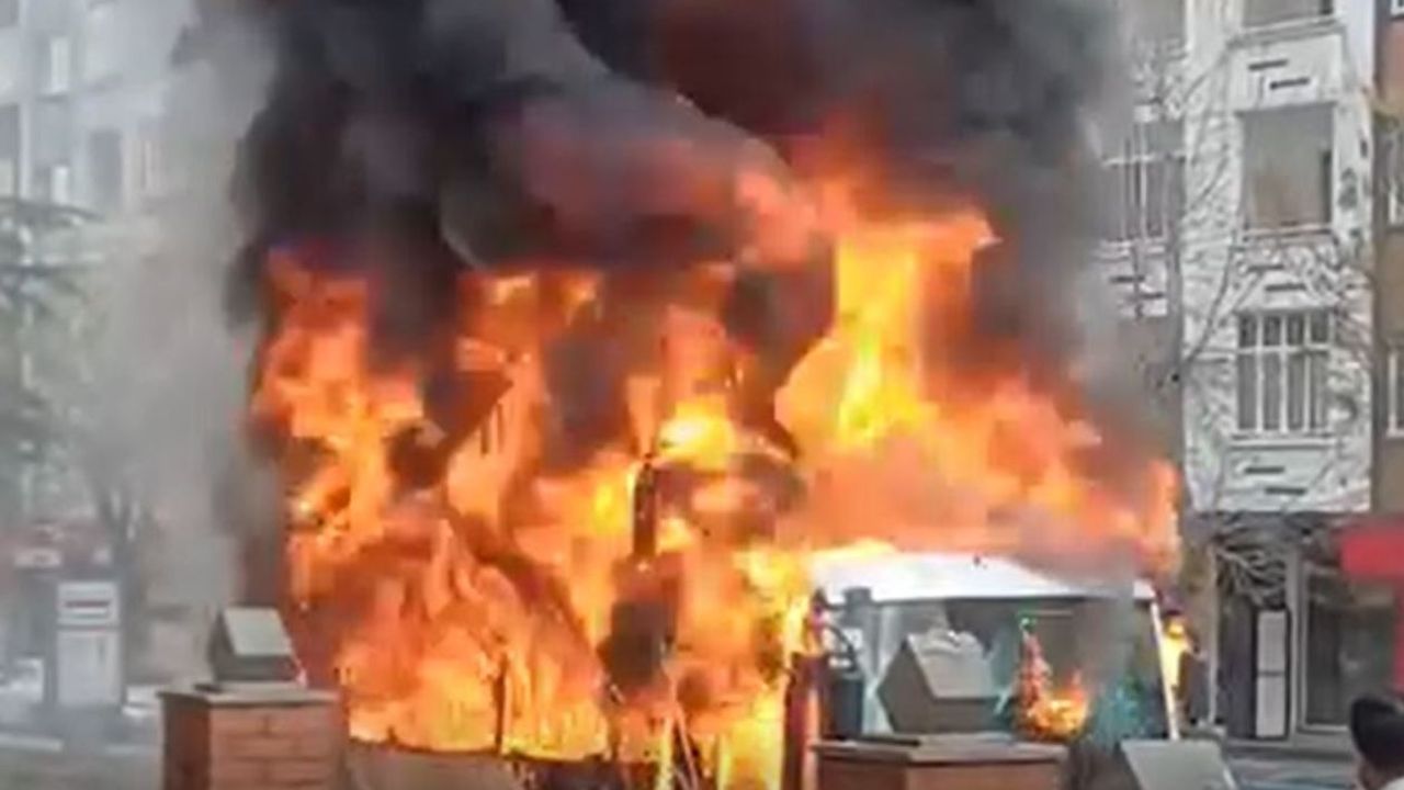 Şehir içi halk otobüsünün alev alev yanma anları ise vatandaşların cep telefonu kamera kayıtlarına yansıdı.
