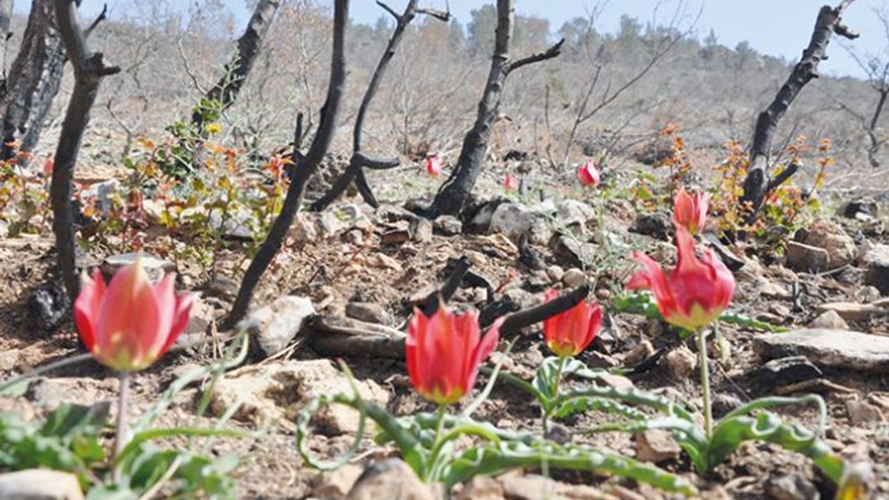 Yanan ormanlık alanlar dağ laleleri ile renklendi