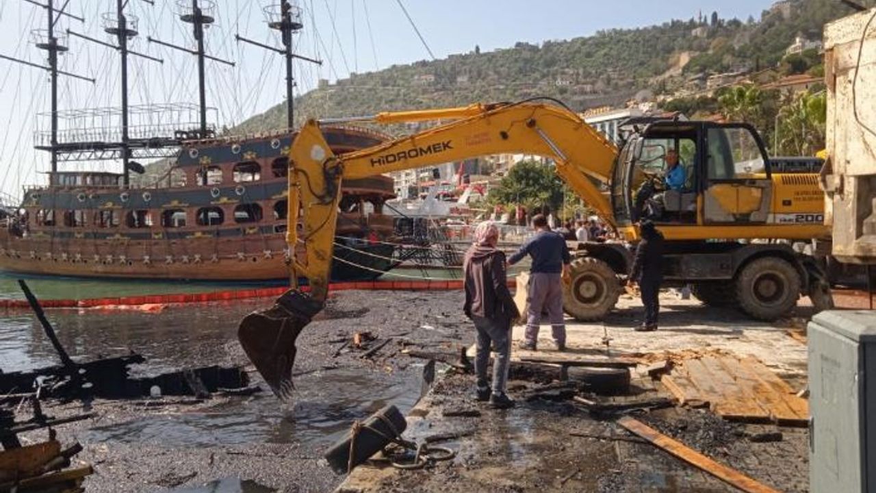 Alanya Balıkçı Barınağı'nda 21 Mart'ta sabah saatlerinde bir teknede çıkan yangın yanındaki diğer tekneye sıçramış ve iki tekne yanmıştı. Yanan teknelerden biri parçalanarak su altına batarken, teknedeki eşyalar ve bazı parçaları kıyıya çıkartıldı.