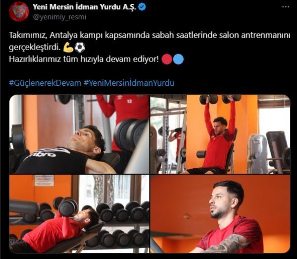 Kulübün sosyal medya hesabından yapılan paylaşımda, "Takımımız, Antalya kampı kapsamında sabah saatlerinde salon antrenmanını gerçekleştirdi. Hazırlıklarımız tüm hızıyla devam ediyor!" ifadelerine yer verildi.