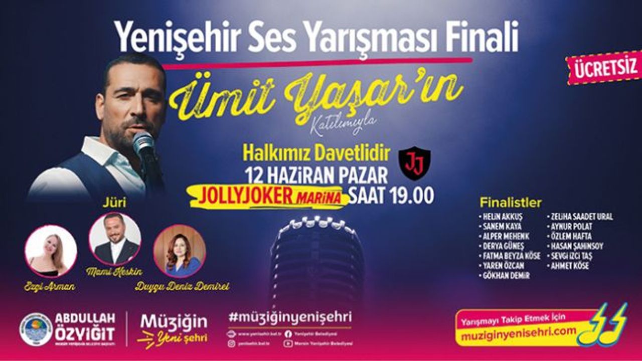 Yarışmanın internet sitesi üzerinden 11 bin 133 kişinin oy kullandığı yarışmada finale kalan adaylar 12 Haziran Pazar günü saat 19.00'da Mersin Marina'da bulunan Jolly Joker'de sahneye çıkacak. 'Müziğin Yeni Şehri' ve 'Yeni Sahne Seni Bekliyor!' sloganıyla Yenişehir Belediyesi tarafından düzenlenen ses yarışmasının finali Yenişehir Belediyesi'nin sosyal medya hesaplarından da canlı yayınlanacak. Adayların performanslarından sonra halk oylaması başlayacak. Vatandaşlar 'muziginyenisehri.com' internet sitesi üzerinden beğendikleri adaya oy verebilecek. Finalde; Helin Akkuş, Sanem Kaya, Hasan Şahinsoy, Alper Mehenk, Derya Güneş, Fatma Beyza Köse, Yaren Özcan, Gökhan Demir, Zeliha Saadet Ural, Aynur Polat, Özlem Hafta, Sevgi İzci Taş ve Ahmet Köse sahneye çıkacak. Mersin Devlet Opera ve Balesinde görevli trompet sanatçısı Ezgi Arman, Mersin Üniversitesi Devlet Konservatuvarından Dr. Öğr. Gör Duygu Deniz Demirel ve sanatçı Mami Keskin yarışmanın seçici kurulunu oluşturuyor. Yarışmanın ödülleri ise şu şekilde; birinciye 3 adet stüdyo kaydı ve aranjman ile 1 video klip, ikinciye iki adet stüdyo kaydı ve aranjman, üçüncüye ise 1 adet stüdyo kaydı ve aranjman. (Haber Merkezi)