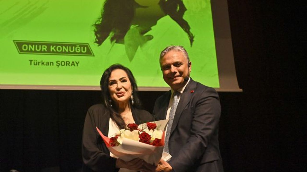 Bircan Usallı Silan moderatörlüğünde gerçekleşen söyleşide Şoray, eğitimini yarıda bırakmak zorunda kaldığını belirterek "Sinema benim üniversitem oldu" dedi. Her şeyin başının eğitim olduğuna dikkat çeken Şoray, Türk sinemasında oynadığı öğretmen ve benzeri birçok kadın karakter rolüyle bütünleşerek hayatı tanıyıp öğrenme fırsatı bulduğunu ifade etti. Muratpaşa Belediyesi'nin kadın danışma merkezleri, Mor Makas, Al Yazma, kadın kooperatifleri gibi projelerini yakından takip ettiğini ifade eden Şoray, kadının sosyal hayata daha aktif katılımını sağlayan sosyal belediyecilik anlayışıyla çalıştığı için Başkan Uysal'ı tebrik etti.