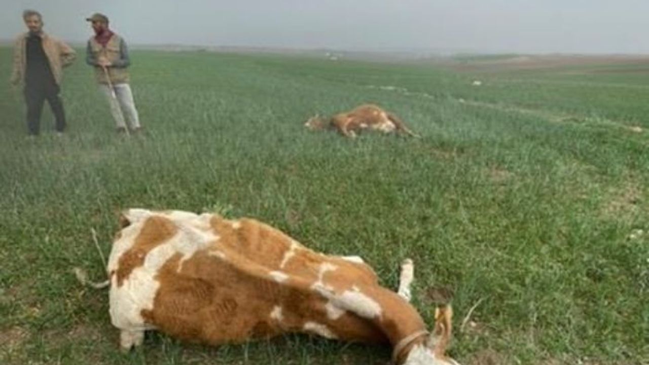 Olay, sabah saatlerinde Diyarbakır'ın Bismil ilçesi kırsal Arapkent Mahallesi'nde meydana geldi. Etkili olan sağanak sırasında meraya yıldırım düştü. Bu sırada merada otlayan 2 inek öldü.
