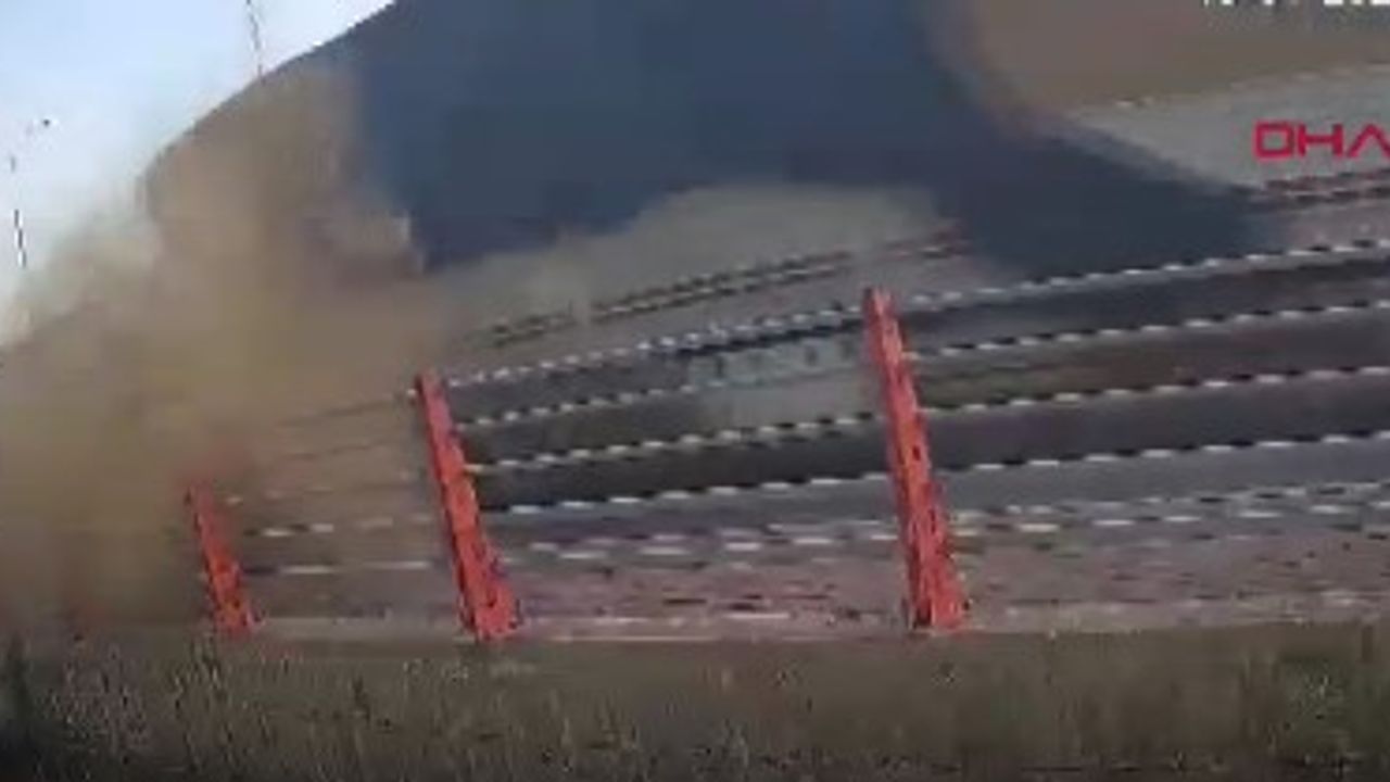 Olay, öğle saatlerinde Şanlıurfa-Akçakale çevre yolu üzerinde meydana geldi. Sürücüsü ve plakası öğrenilemeyen TIR'daki saman balyaları, seyir sırasında yola devrildi. Bu sırada yol kenarında yürüyen bir kişi, balyaların altından kalmaktan son anda kurtuldu. O anlar güvenlik kamerasına yansırken, TIR şoförünün aldırmadan yola devam ettiği görüldü.