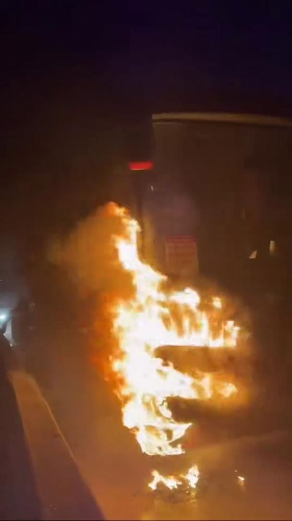 Antakya-İskenderun yolu Kıcı mevkiinde, Hatay-Sivas seferini yapan ve içerisinde 5 yolcu bulunan Öz Sivas firmasına ait yolcu otobüsünde yangın çıktı. Aracın ön kısmındaki yangını fark eden araç şoförü yolcuları araçtan indirerek güvenlik önlemi aldı. Çevredeki bir vatandaşın hızlı müdahalesiyle alevler yangın tüpüyle söndürüldü. Bölgeye gelen itfaiye ekipleri de araçta soğutma çalışması gerçekleştirdi. Yaralananın ve can kaybının olmadığı yangında araçta hasar oluştu.