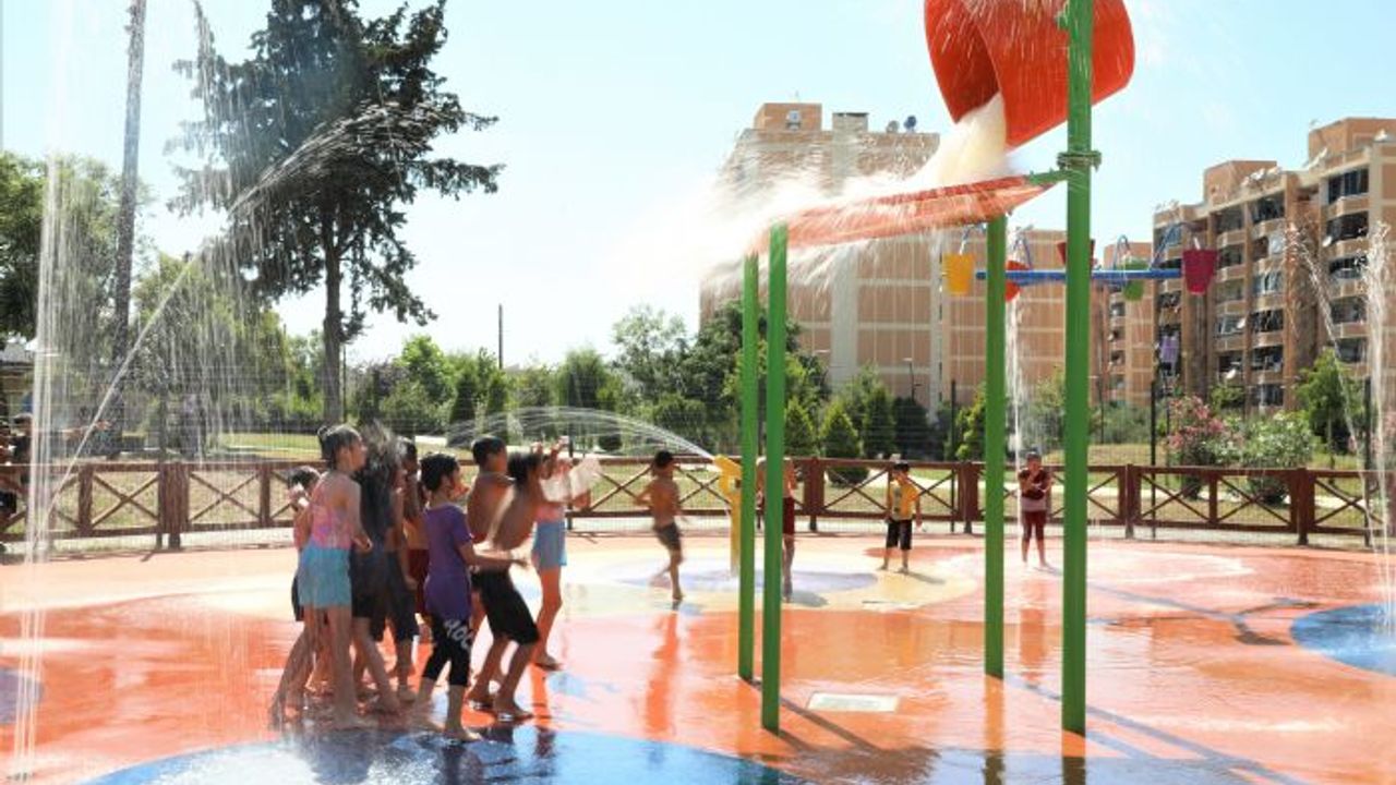 Yüreğir'de çocuklar su oyun parkında serinliyor