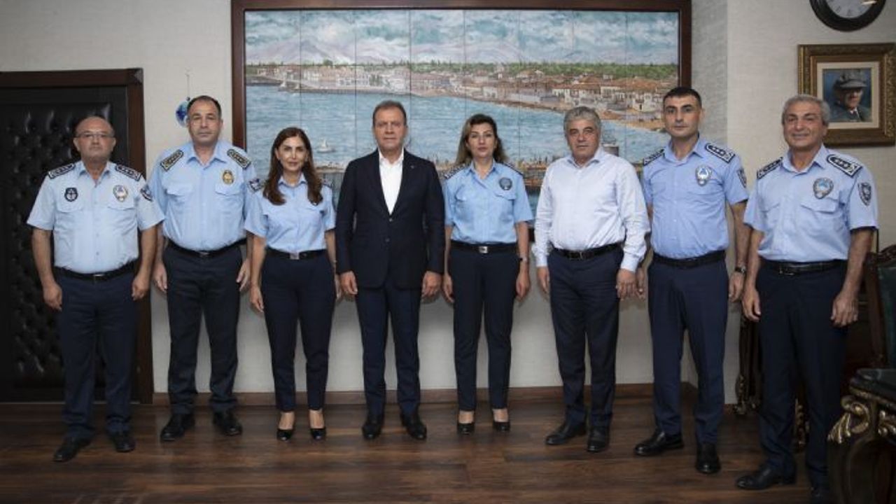 Mersin Büyükşehir Belediyesi Zabıta Dairesi Başkanı Fuat Tuğluoğlu ile Zabıta Dairesi'nde görev yapan şube müdürleri, zabıta teşkilatının 197. Kuruluş yıldönümü dolayısıyla Mersin Büyükşehir Belediye Başkanı Vahap Seçer'i ziyaret etti.