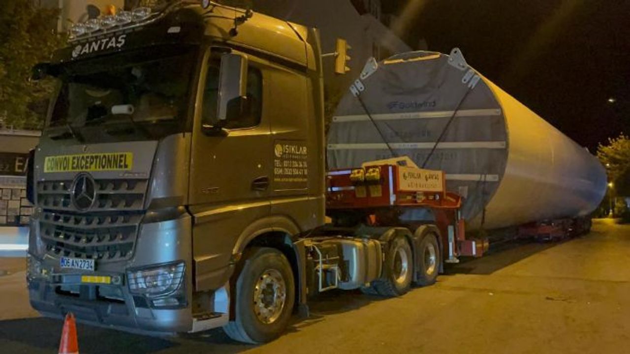Bursa'nın Gemlik İlçesi'ne rüzgar türbini gövdesi taşıyan tır, Eskişehir'de arıza yaptı.