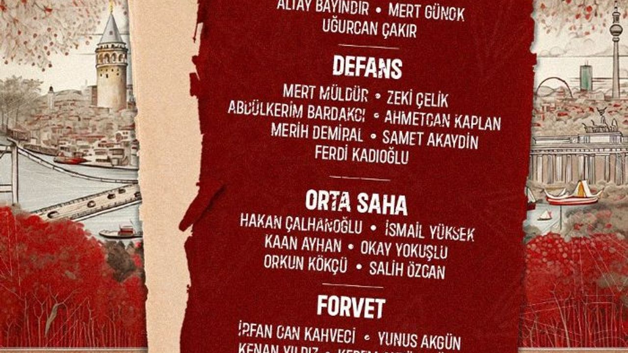 A Milli Futbol Takımı'nın EURO 2024 nihai kadrosu şu şekilde:,