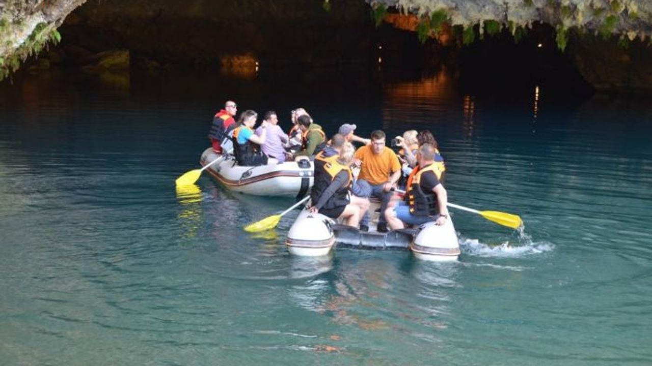 Su derinliğinin bazı yerlerde 40 metreyi bulduğu mağaraya gelen turistler, etkileyici doğa oluşumunu, İbradı Belediyesinin profesyonel ekibinin önderliğinde turkuaz renkte suyun üzerinde botlarla görme imkanı yakalıyor.