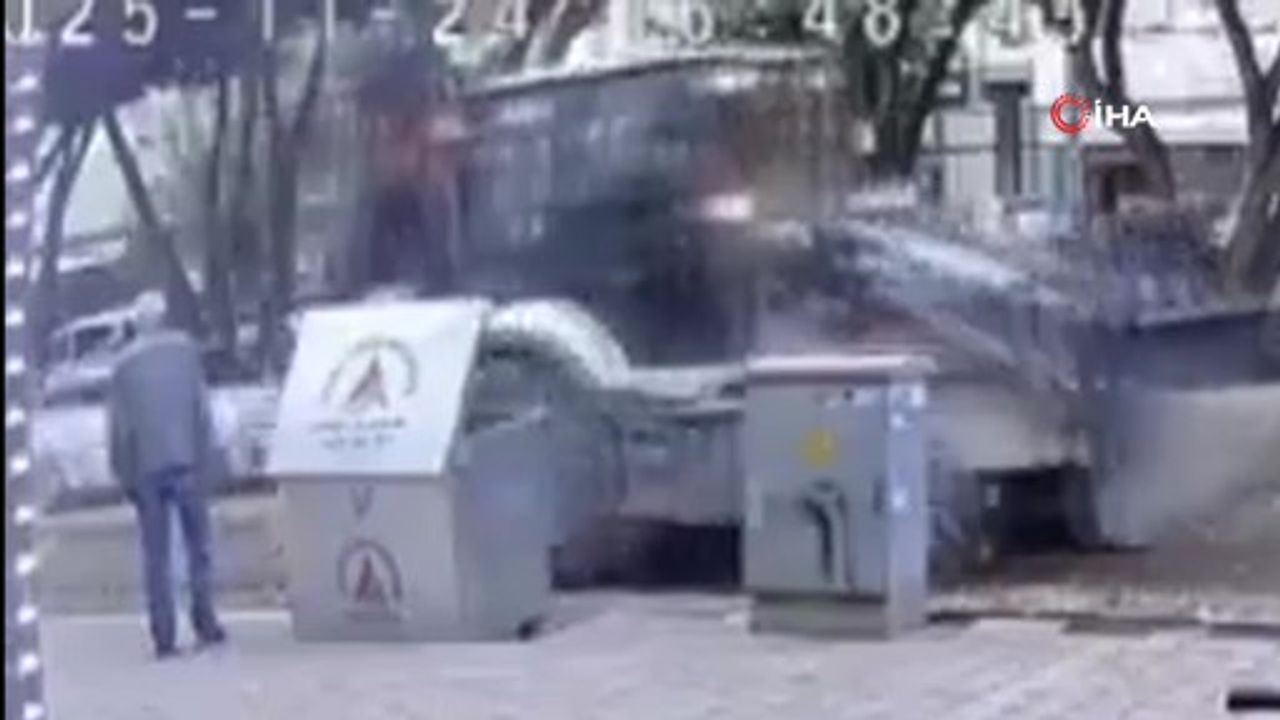 Yaşlı adamın feci şekilde hayatını kaybettiği kazanın görüntüleri ise çevrede bulunan bir iş yerinin güvenlik kamerasına yansıdı. Görüntülerde, Okan Işık'ın kaldırımda yürüdükten sonra yolun karşısına geçmek için bir süre kepçenin geçmesini beklediği görüldü. Kepçenin geçmesinin ardından yola hareketlenen Işık'ın geri manevra yapan kepçenin altında kaldığı anlar yer aldı.