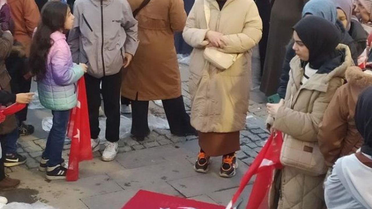 Binlerce partili saatler öncesinde miting alanına geldi. Bu sırada akşam ezanı okuyunca alandan çıkamayan bir kadın, önüne koyduğu Türk bayrağı ile kalabalık arasında namaz kıldı. O sırada vatandaşlar kadının önünden geçmemeye gayret gösterdi.