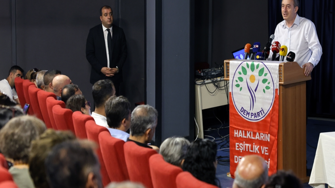 DEM Parti olarak barışı halklarla ve emekçilerle inşa etmeye çalıştıklarını dile getiren Bakırhan, “Bu süreci birlikte aşacağız” dedi.