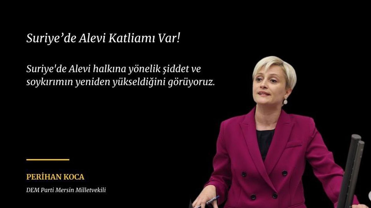 Milletvekili Perihan Koca, Suriye'de rejimin yıkılmasından bu yana en az 15 bin Alevi'nin katledildiği iddiasını dile getirerek, katliamcı çetelerin yeni bir saldırı dalgası başlattığını öne sürdü.