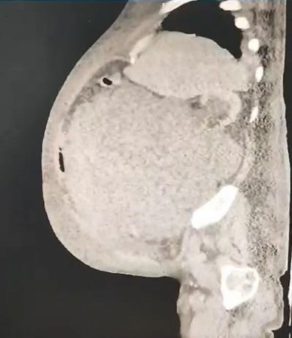 Hastayı muayene ettiklerinde karnında normal basit bir gerginlik olmadığını anladıklarını belirten Opr. Dr. İsmet Çelik, "Hasta bize, karın gerginliği, karın ağrısı, karın şişkinliği, ayaklarında şişme, yürüyememe nedeniyle başvurdu. Muayenesi yaptık. Muayenesinde karnın normal basit bir gerginlik olmadığını anladık. Tetkik tahlile başvurduk. Önce ultrasyonla değerlendirdik. Ultrasyonda kitlenin olduğunu gördük. Diğer yapılarla ilişkisini anlamak için ileri bir tetkik yaptık. Tomografi sonucunda kitlenin boyutu şekli, şemali üç aşağı beş yukarı kafamızda bir şablon oluşturdu. Ancak hastanın geçmişinde çok sıkıntıları olduğu için çok riskli olduğunu ayrıca değerlendirdik. Hasta geçmişte beyin damarı tıkanıklığı yaşamış kalbi yüzde 15 çalışıyor. Tansiyonu, şekeri var. Dolayısıyla böyle bir hastanın ameliyatı çok riskli olacağı için her türlü ayrıyı hesap ederek değerlendirdik. Sonra anestezi ekibiyle hastanın ameliyatı nasıl olur istişaresini yaptık. Daha sonra kendi ekibimizle değerlendirmesini yaptık. Gerekli optimal şartları hazırladıktan sonra ameliyatına karar verdik. Hastayı ameliyata aldığımızda karnında patlatacak şekilde çok büyük bir gerginlik oluşturacak şekilde kitlesini gördük. Kitle bütün damar yapılarıyla bağlantılı çevre dokularıyla beraber rezeksiyonunu yaptık. Kolay olmadı çok büyük damarları vardı bunların her an kanaması kalbinin zayıf olması tüm bunları hesaba kattığınız zaman zor bir ameliyat oldu. Ameliyat yaklaşık iki saat sürdü. Arka duvarını eksize ederken tümörün sol böbrekten kaynaklı olabileceğini gördük. Dolayısıyla sol böbreği de spesmene dahil ettik ki en blok çıkarabilelim diye. Ameliyat başarılı tamamlandıktan sonra hastayı hemen uyandırmak istemedik uyutarak ameliyatı sonlandırdık. Hastamız şu an genel durumu, kanama v.s şikayetleri yok gayet iyi durumda" dedi.