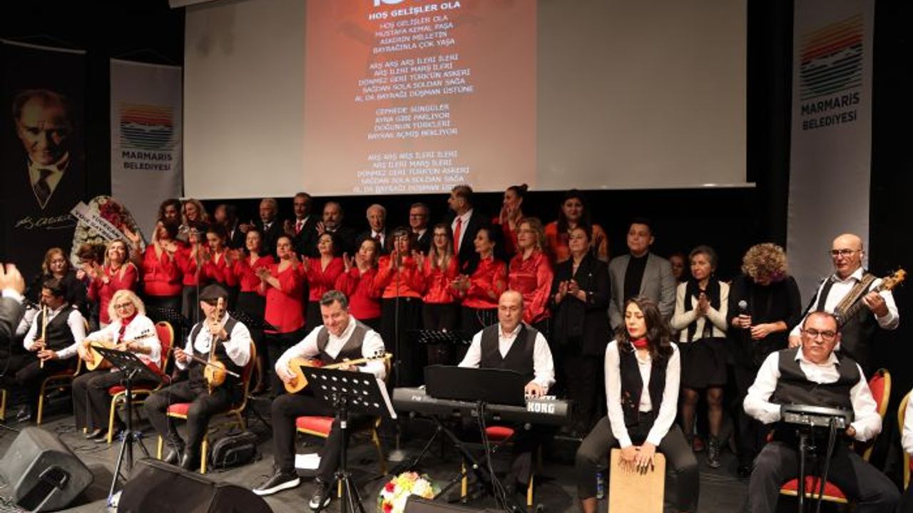 100. Yıl özel konserinde Atatürk'ün sevdiği türküler de hep birlikte seslendirildi. 10 kişiden oluşan orkestra eşliğinde Kerimoğlu Zeybeği, Çıktım Belen Kahvesine, Cemilenin Gezdiği Dağlar Meşeli, Ah Bir Ataş Ver, İki Keklik Bir Kayada gibi sevilen türküler koro ve solistler tarafından söylendi. Konser sonunda protokol üyeleri de sahneye çıkarak Hoş Gelişler Ola adlı türküyü seslendirdi. Dernek Başkanı Yüksel Topaloğlu da Başkan Yardımcısı Suzan Zift'e Marmaris Belediyesi'nin destekleri için teşekkür plaketi sundu.