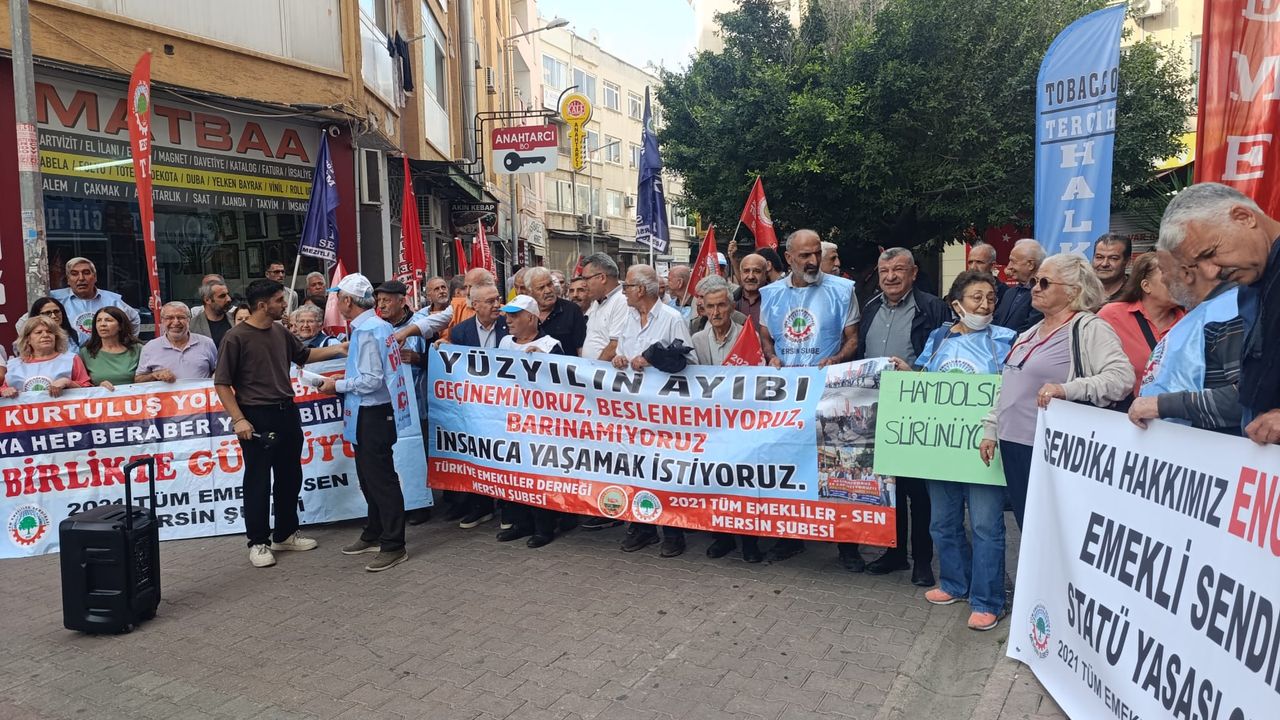 Mersin’de Türkiye Emekliler Derneği (TÜED) ve 2021 Tüm Emekliler Sendikası Mersin Şubeleri Yoğurt Pazarı Parkı’nda ortak bir basın açıklaması yaptı.
