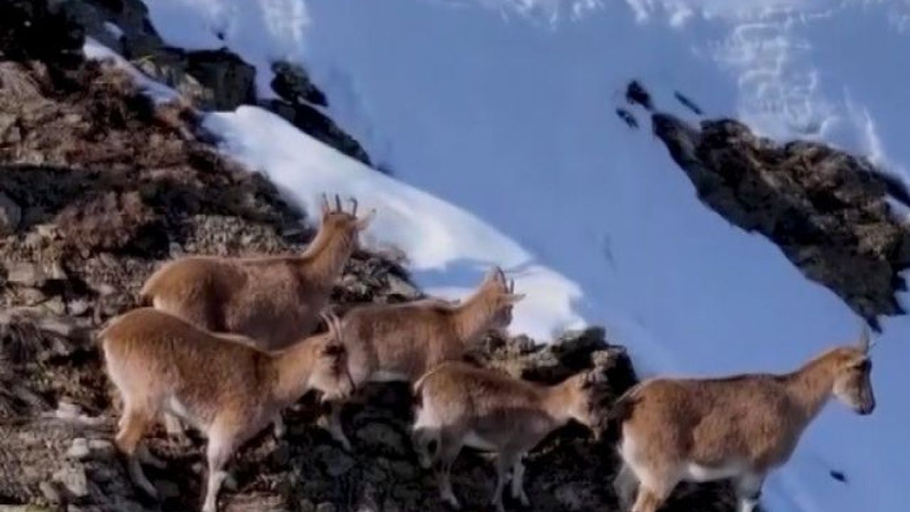 Yaban hayatının zengin olduğu Erzincan'da nesli tükenmekte olan ve koruma altında bulunan dağ keçileri karlı arazide yiyecek ararken DKMP ekiplerince drone ile kaydedildi. Yükseklerde yaşadığı için nadir görülen dağ keçileri doğaseverleri mest etti. Yakından görüntülenen sürü halindeki dağ keçileri belgesel niteliğinde görüntüler ortaya çıkardı. Karlı arazide kendi doğasında görüntülenen dağ keçileri doğaseverlerin beğenisine sunuldu.