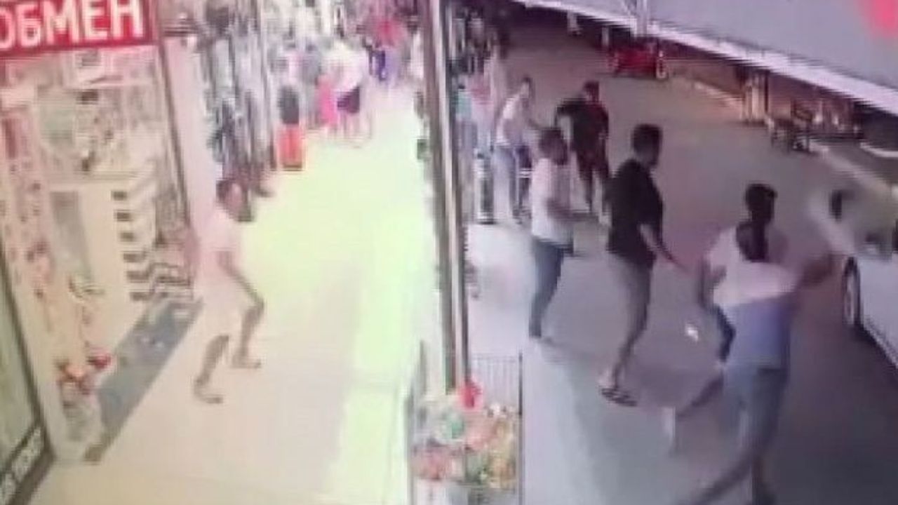 Esnaf, üzerlerine otomobil süren turiste karşı kendilerini plastik taburelerle savundu