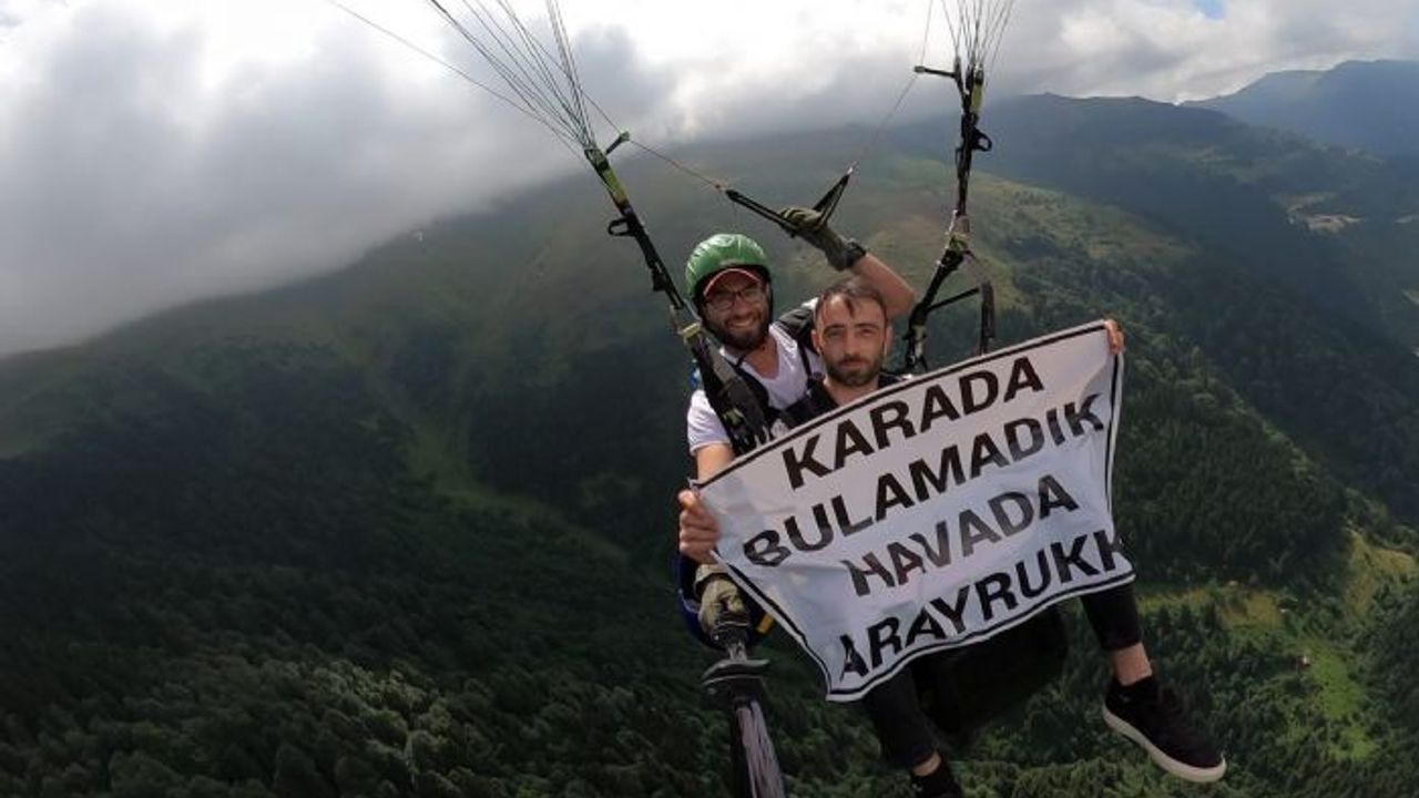 Araklı ilçesinin Yiğitözü mahallesinde yaşayan Muhittin Akbaş, evlenmek için uzun bir süredir gelin adayı aradığını ancak aradığı gelin adaylarının ekonomik olarak kendisini zorlayacaklar taleplerde bulunduğunu söyledi. Gelin adaylarının evlenmeden ev-araba gibi taleplerinin kendisi gibi Türkiye'de yaşayan bir çok gencin karşılamasının bu ekonomik şartlarda mümkün olmadığını belirten Akbaş, bunu kendine has bir üslupla protesto ettiğini söyledi. Akbaş, kuzeninin Uzungöl'de turistlere yamaç paraşütü hizmeti verdiğini belirterek "Ben de düşündüm taşındım, benim gibi bir çok gencin içinde bulunduğu durumu göstermek ve sesimizi duyurmak için 'Karada bulamadık, havada arayruk' pankartı hazırlayarak gökyüzünde bunu açtım. Sosyal medyada da bunu paylaştım. Bu baya bir ses getirdi, görüp arayanlar, tebrik edenler oldu" dedi.