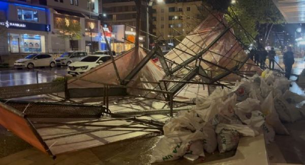 Tekirdağ'ın Çerkezköy ilçesinde şiddetli rüzgar ve fırtına hayatı olumsuz etkiledi. Vatandaşlar bir anda yağan yağışla zor anlar yaşarken, çıkan şiddetli fırtına nedeniyle de olumsuz anlar meydana geldi. Kentin en işlek caddelerinden olan Atatürk Caddesi'nde bir binanın tadilatı için kurulan iskele şiddetli rüzgar nedeniyle yıkıldı. Üzerine iskele devrilen 3 aracın camları ve bagajlarında maddi hasar oluştu. İhbarla birlikte olay yerine gelen itfaiye ekipleri, polis ekipleri ve zabıta ekipleri geniş güvenlik önlemleri aldı. Olayla ilgili başlatılan inceleme sürüyor.