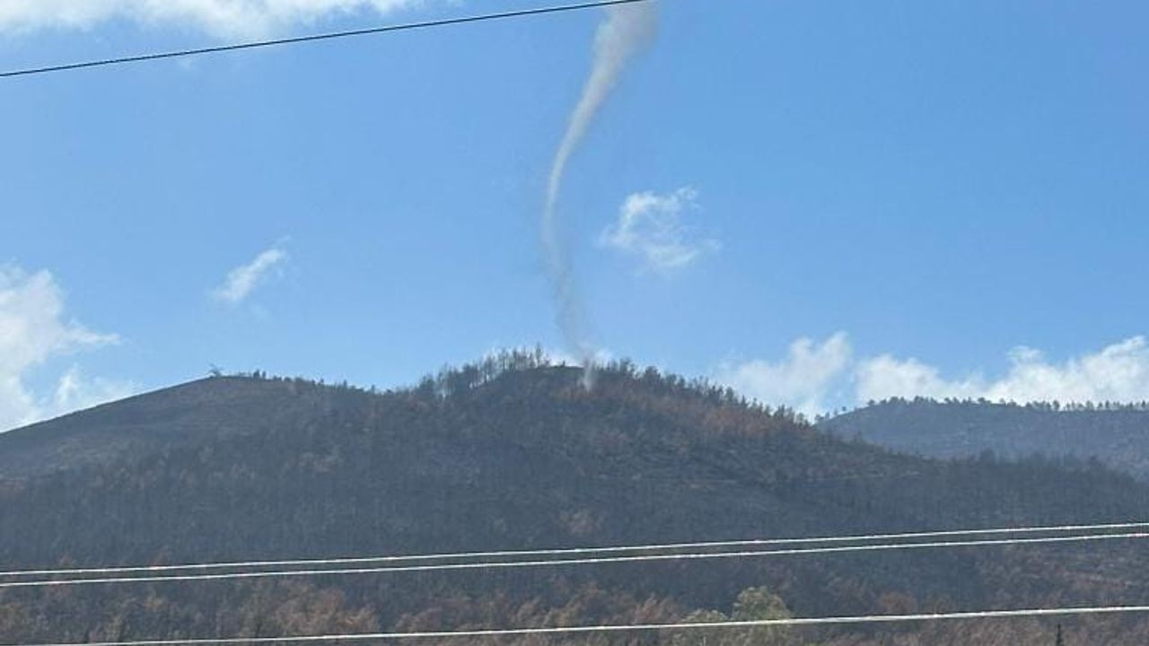 Küçük çaplı hortum, bölgede bulunan bir kişi tarafından cep telefonu kamerasıyla görüntülendi. Tozları ve kül kalıntılarını havaya savuran hortumun, yerleşim alanlarına ulaşmadan etkisini yitirdiği öğrenildi.