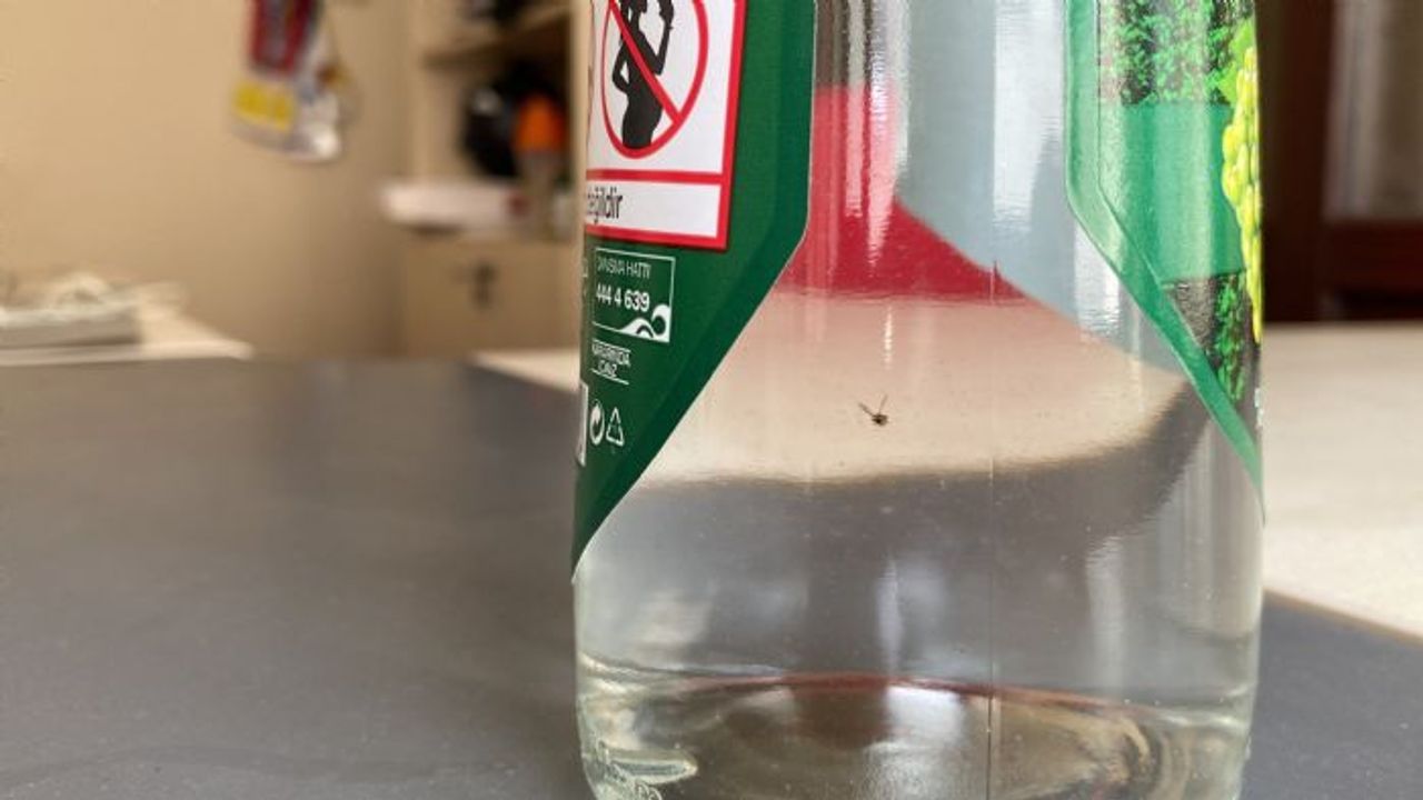 Mersin'de ilginç bir olay yaşandı. Bir büfeden rakı alan İsmail Eren Kabacık, arkadaşlarıyla gittikleri mekanda hayatlarının şokunu yaşadı. Kapağı kapalı ve bandrolü bulunan içki şişesinin içinde sinek olduğunu fark eden Kabacık, firma hakkında suç duyurusunda bulundu.