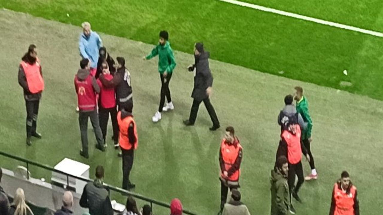 Maçın ilk yarısında rakip takımın 2 yedek oyuncusunun tribünlere yönelmesinin ardından gerginlik yaşandı. Yaşanan tepkiler sırasında araya giren polis, sakinleşmeyen taraftarları tribünden çıkarttı. 35'inci dakikada Kocaelispor'da Markao'nun attığı gol sonrasında deplasman tribünündeki yaklaşık 100 kişilik taraftar grubu, hem bazı cam bariyerleri tekmelerle kırdı hem de koltukları söktü. Bu sırada kırılan camın bir polise isabet etmesi sonucu polis yaralandı. Hafif şekilde yaralanan polis memuru, ambulansla tedavi edildi. Polisin deplasman tribününde beklemesiyle gerginlik sona erdi.
