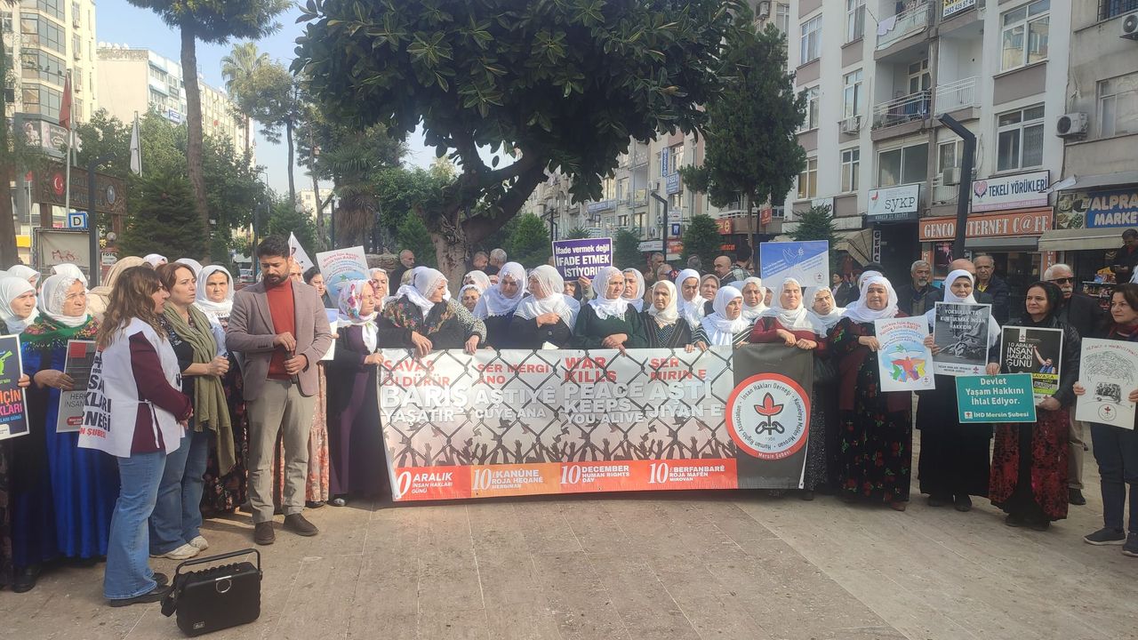 İnsan Hakları Derneği (İHD) Mersin Şubesi, İnsan Hakları Evrensel Bildirgesi’nin kabul edilişinin 77. Yılı kapsamında Özgür Çocuk Parkı’nda bir araya geldi. 10 Aralık Dünya İnsan Hakları Günü dolayısıyla düzenledikleri basın açıklamasını İHD Mersin Şube Eş Başkanı Zeynep Kaya okudu. Evrensel Bildirge’nin günümüzde de insanlığın en önemli kurucu metinlerinden biri olarak yol göstermeye devam ettiği vurgulayan Kaya, “Tüm insanların onur ve haklarda eşit olduğu bilinciyle; eşitsizlik, adaletsizlik, yoksulluk, ayrımcılık ve savaşa karşı ısrarla barış, demokrasi ve insan hakları değerlerini savunuyoruz” şeklinde konuştu.