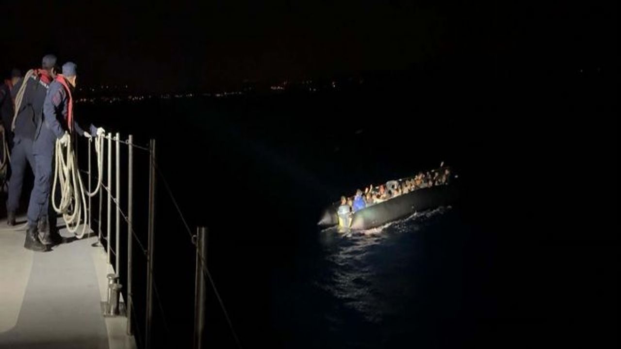 Ekipler, Sahil Güvenlik Mobil Radarı tarafından tespit edilen lastik botta bulunan 32'si çocuk 54 kaçak göçmeni yakaladı.
