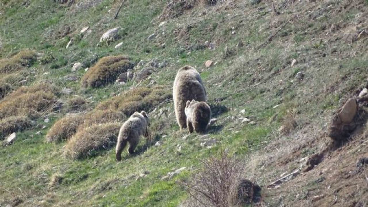 Salih Güleç, doğa yürüyüşüne çıktığı Köse Dağı'nda karşılaştığı anne ve iki yavru ayıyı cep telefonu kamerası ile kayıt altına aldı.