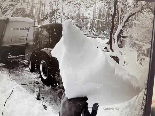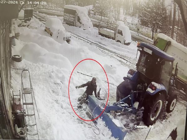 Olay, Erzurum Tortum ilçesi Yavuz Sultan Selim Mahallesi'nde meydana geldi. Oto lastik tamirciliği yapan Kahraman Kaya, Tortum Belediyesi'ne ait traktörün lastiğini tamir etmeye başladı. İki katlı dükkandan malzeme alıp traktörün yanına dönen Kaya'nın üzerine çatıdan kar kütlesi düştü. Kaya şans eseri kazayı küçük sıyrıklarla atlatırken, o anlar iş yerinin güvenlik kamerasına yansıdı.