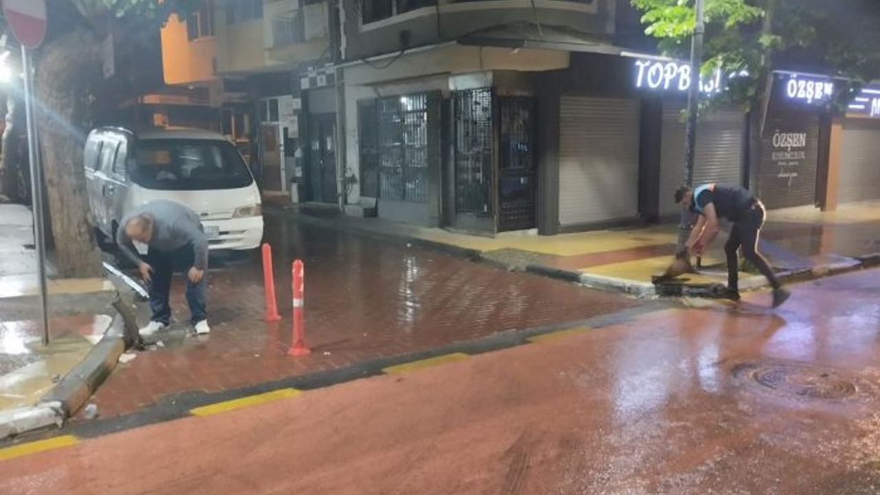 Yağmur suyu ızgaralarına yağış ile birlikte dolan malzemeler temizlenirken, fırtına dolayısıyla devrilen bazı ağaçlar ekiplerce kaldırıldı.
