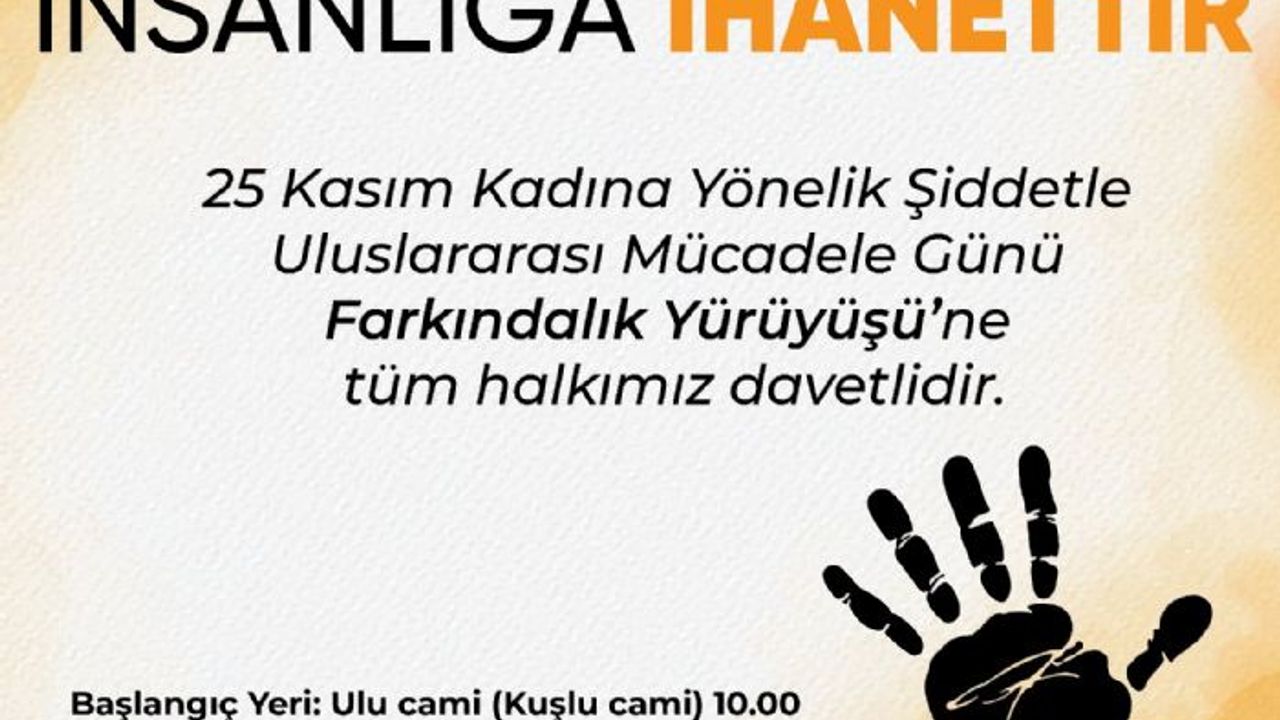 Mersin'de 25 Kasım Kadına Yönelik Şiddete Karşı Uluslararası Mücadele ve Dayanışma Günün de Akdeniz belediyesi ve Toroslar belediyesinin düzenleyeceği yürüyüş 23 Kasım Perşembe günü saat 10.00'da Ulu Cami önünde başlayacak, Cumhuriyet meydanında yürüyüş son bulacak.
