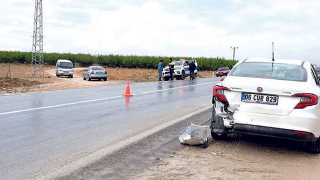 Alınan bilgiye göre, kaza Mut-Silifke karayolu Palantepe Mahallesi sanayi çıkışında meydana geldi. Sürücüleri belirlenemeyen 33 U 7987 plakalı otomobil, 06 CUR 829 ve 33 DY 721 plakalı otomobiller zeminin kaygan olması sebebiyle kontrolden çıkarak kaza yaptı. Kazada 33 DY 721 plakalı otomobildeki Ali Dut, Yasin Dut, Hatice Dut, 33 U 7987 plakalı otomobildeki Durmuş Ali Zengin, Ferhat Say ve 06 CUR 829 plakalı otomobildeki Eren Dinler yaralandı. Ambulanslarla Mut Devlet Hastanesine kaldırılan yaralılar tedavi altına alındı. Kaza yapan araçların yoldan kaldırılmasıyla yol trafiğe açıldı. (İHA)