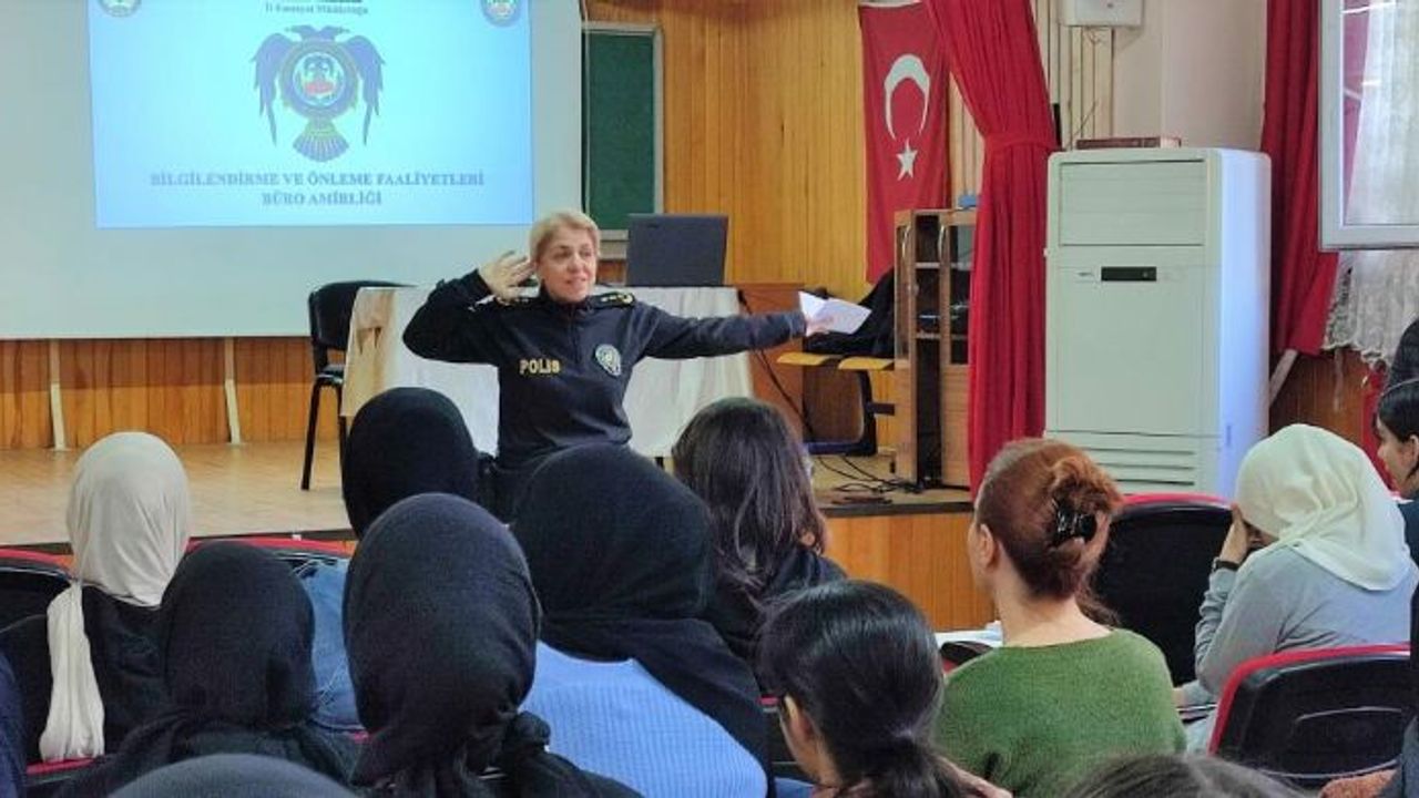 Bilgilendirme ve Önleme Faaliyetleri Büro Amirliği ekipleri, düzenledikleri konferansta, Mezitli Kız İmam Hatip Anadolu Lisesi öğrencilerine, terör örgütlerinin eleman kazanma yöntemleri, terör örgütlerinin genç nüfus başta olmak üzere çocuklar ve gençleri nasıl istismar ettikleri, terör örgütlerinin elemanlarını nasıl kullandıkları ve hangi yöntemleri izledikleri, birlikte hareket etmenin gerekliliği, şüpheli paket, araç ve şahıslar, sosyal medya kullanımıyla ilgili konularda bilgi verdi.