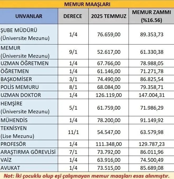 Peki Memurlar Ne Kadar Zam Alacak? İşte Yapılan Son Hesaba Göre Memur Maaşı Tablosu: