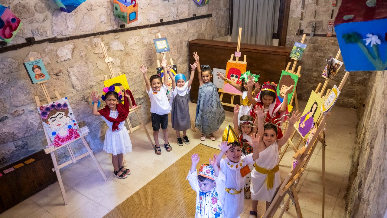 Sergide, Tarsus’un tarihi ve mitolojik karakterleri çocukların bakış açısıyla kağıtlara, tuvallere ve 3 boyutlu eserlere yansıdı. Kolajlardan akrilik boyamalara, geri dönüşüm malzemeleriyle hazırlanan çalışmalardan yaratıcı 3 boyutlu eserlere kadar pek çok farklı teknik kullanıldı. Eserler, çocukların hayal gücüyle birleşerek sanata dönüştü.