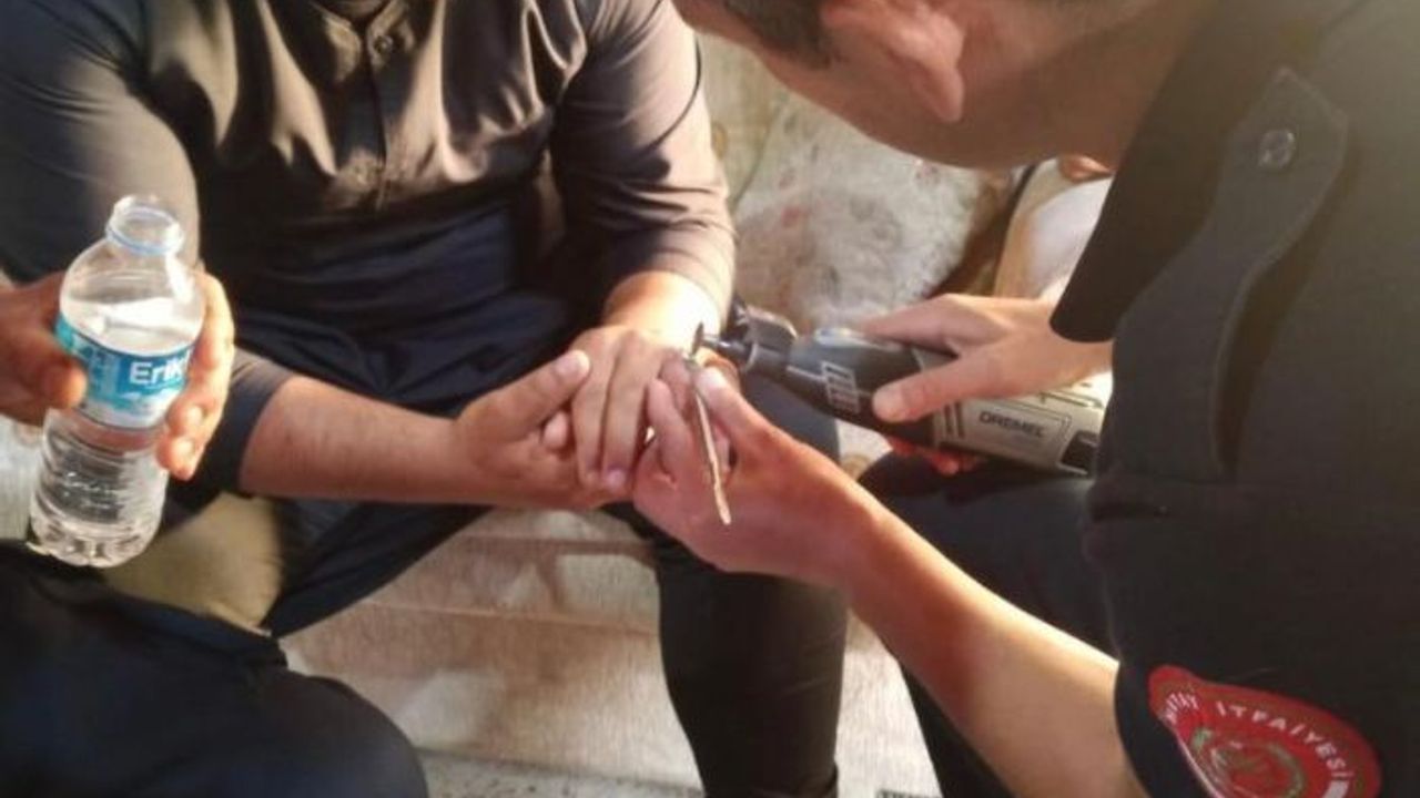 Dörtyol ilçesinde bir vatandaş parmağına sıkışan yüzüğü çıkaramayınca itfaiye amirliğine giderek yardım istedi.