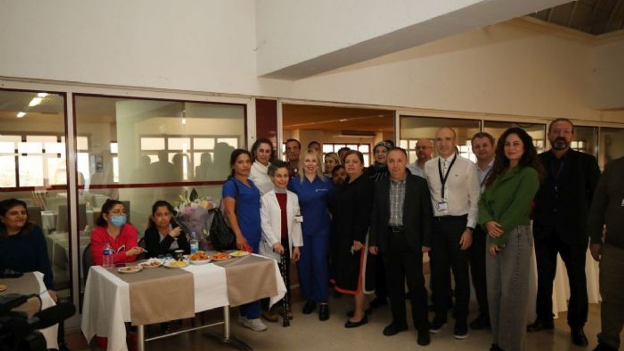 Rektör Özkan, hastane çalışanı Necibe Evrim Tongül'e günün anısına çiçek takdim etti. Rektör Özkan daha sonra katılımcılarla bir süre sohbet etti.