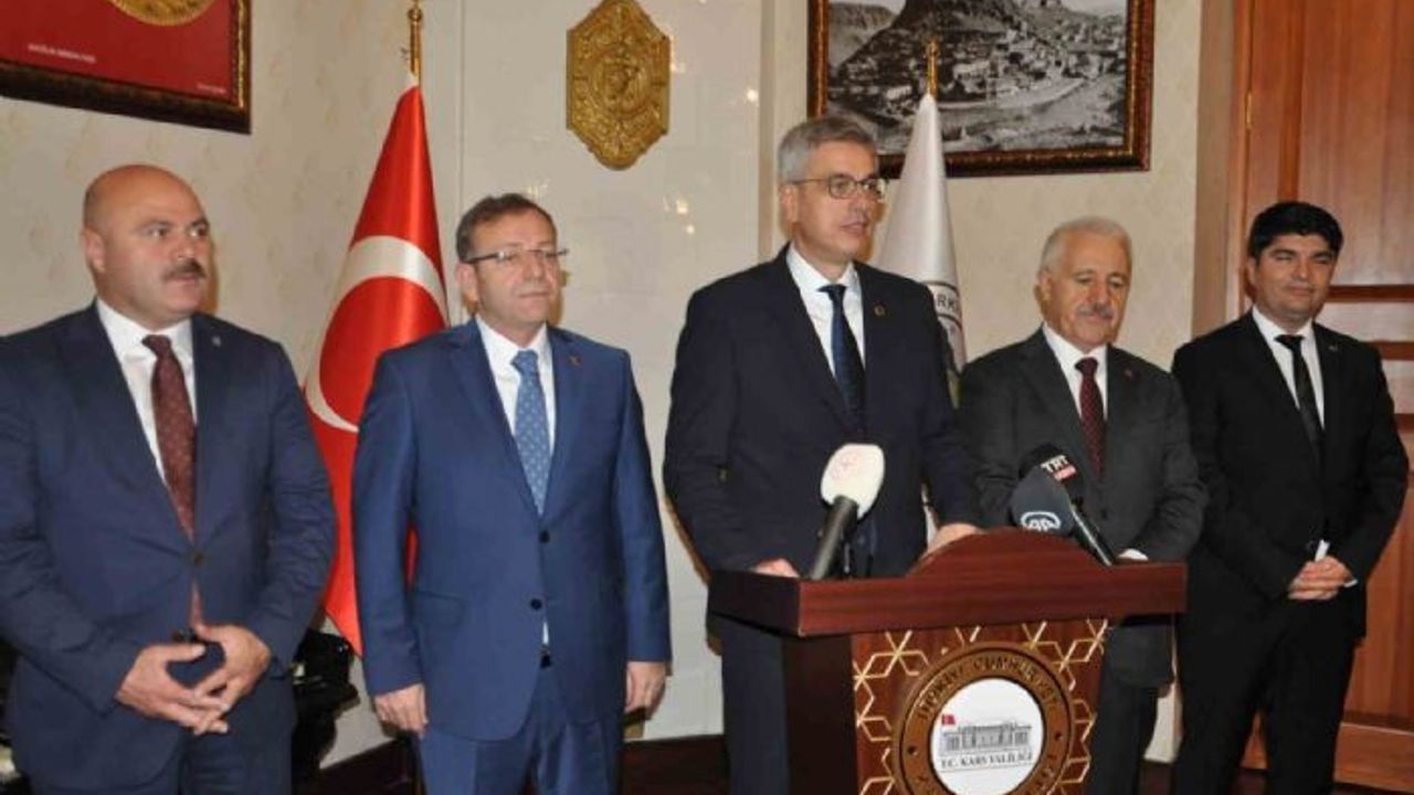 Bakan Memişoğlu'nu Kars Valiliği ziyaretinde Vali Ziya Polat, Milletvekili Adem Çalkın, 65. Hükümette Ulaştırma, Denizcilik ve Haberleşme Bakanı Ahmet Arslan, kurum ve daire müdürleri karşıladı.