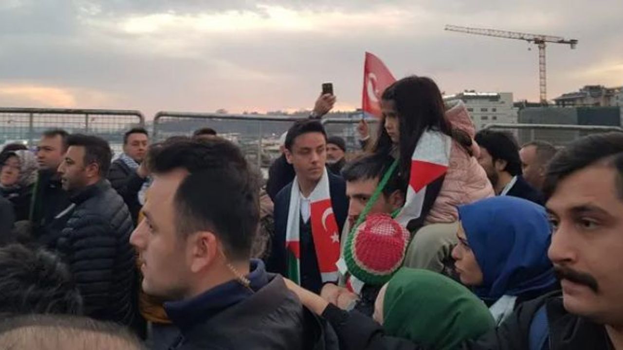 Tarihi güne ev sahipliği yapan yarımadada 'Nehirden Denize Özgür Filistin' ve 'Şehitler ölmez vatan bölünmez' sloganları yankılandı. Galata Köprüsü'ndeki etkinliğe Baykar Yönetim Kurulu Mütevelli Heyeti Başkanı Selçuk Bayraktar da kızıyla katıldı