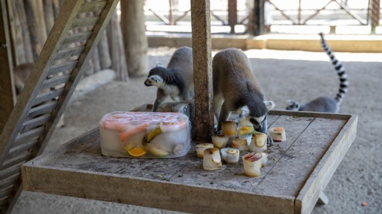 Buzlu meyveleri, hayvanların sevdiği meyvelere göre hazırladıklarını ifade eden Ölmez, "Meyvelerimizde elma, armut, muz, kivi, portakal, havuç, kuru incir var. Meyvenin haricinde ceviz, fındık gibi kuruyemişler de veriyoruz. Buradaki hayvanların en çok memnun olduğu saatler bu serinletmeleri yaptığımız, buzları verdiğimiz ve suladığımız saatler oluyor" diye konuştu.